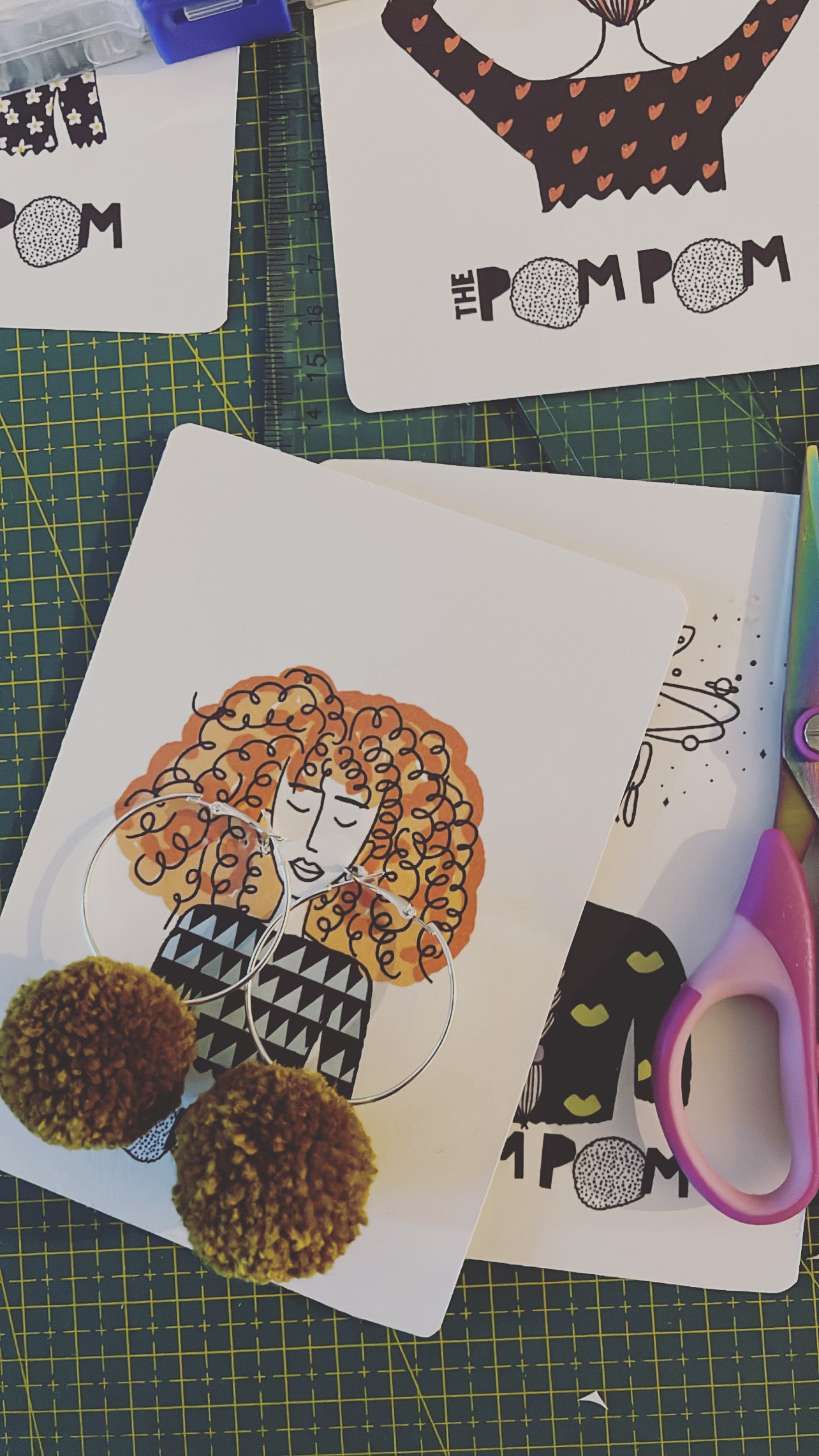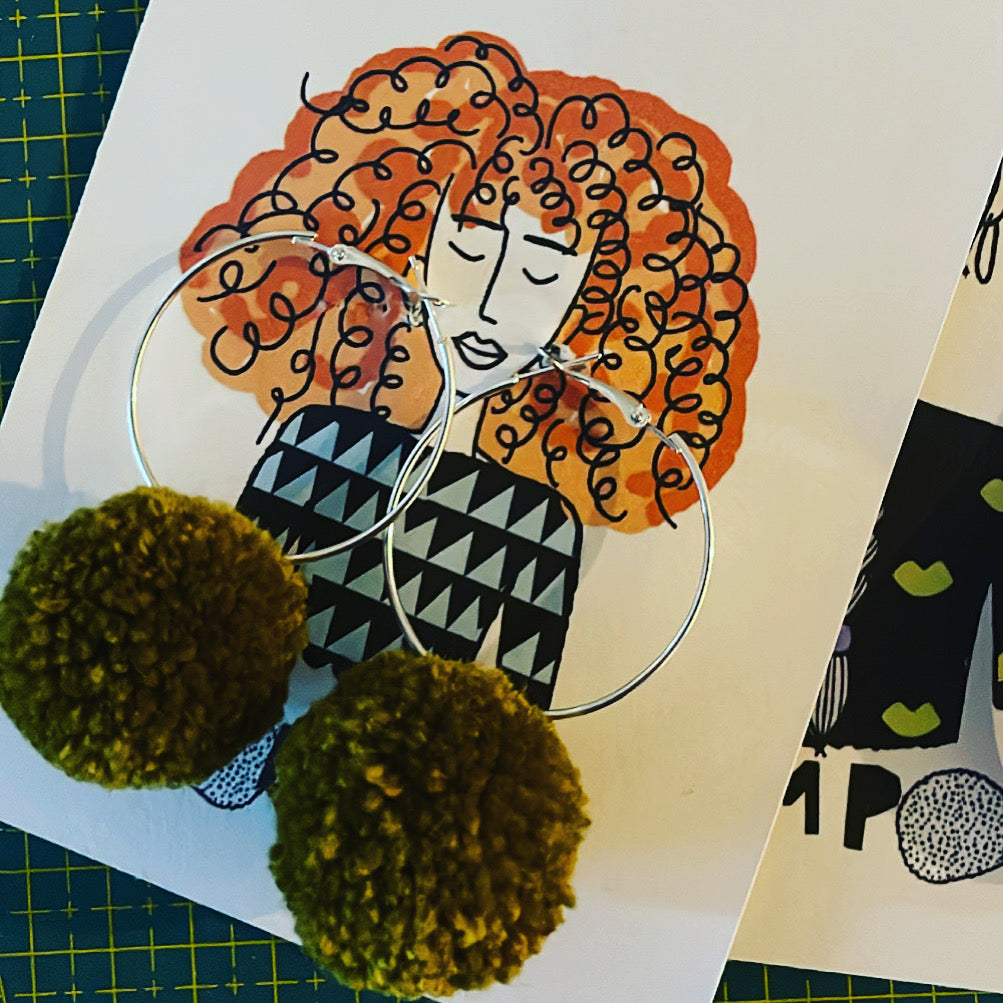 Κρίκοι διαμέτρου 3cm διακοσμημένοι με πομ πομ.