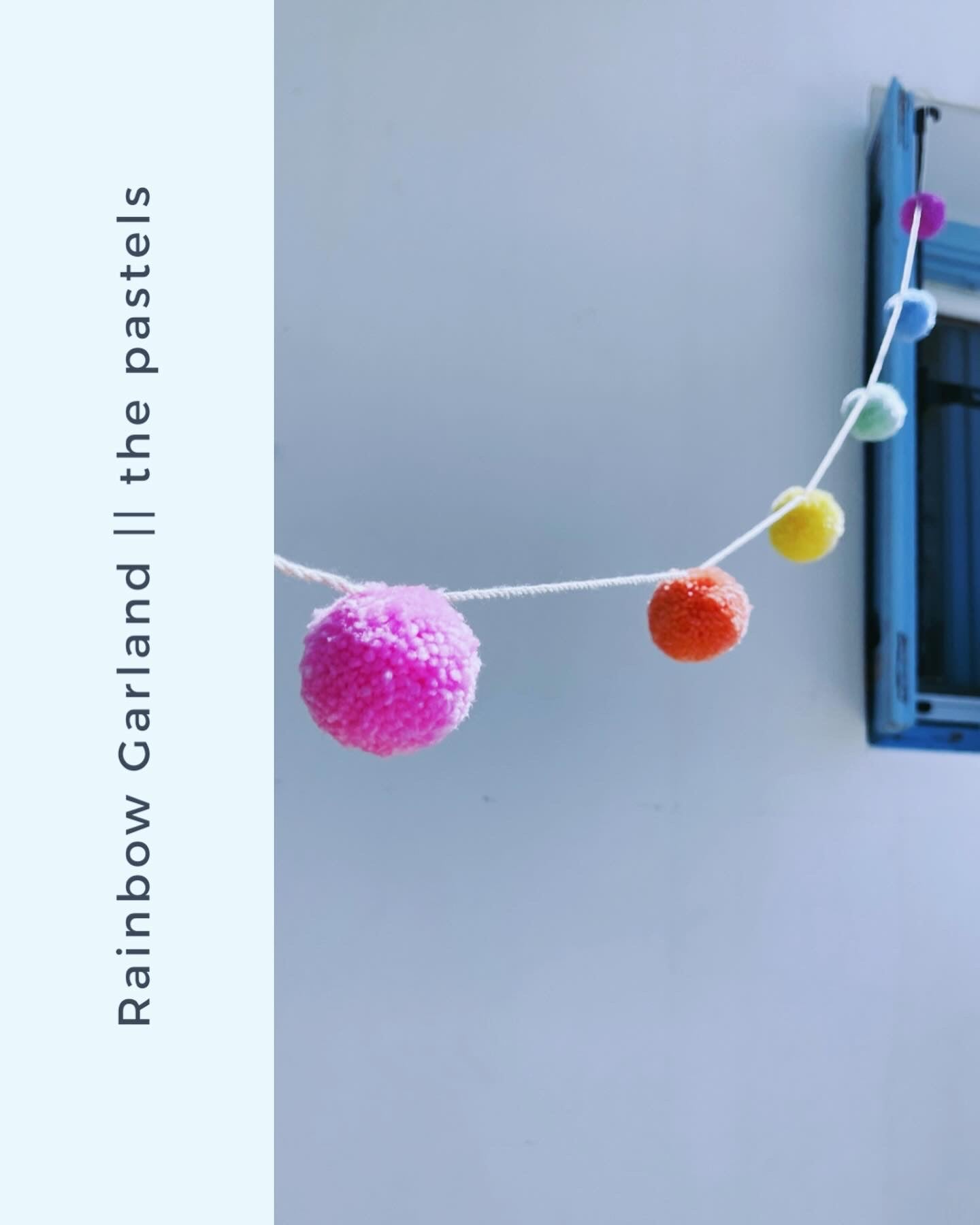 Γιρλάντα με 6 μεγάλα πομ πομ σε παστέλ χρώματα ουράνιο τόξο.